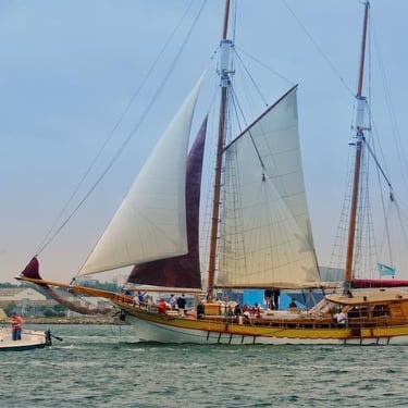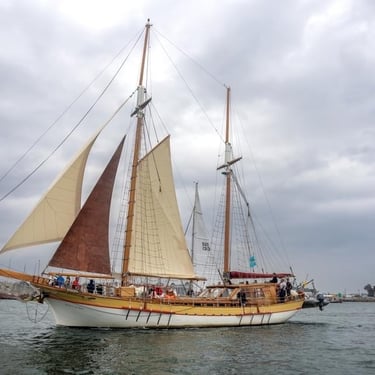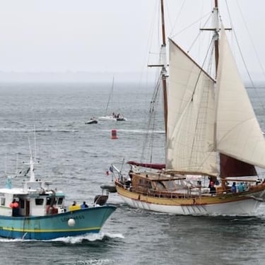 Première participation de Bora Bora à une parade de bateaux, vieux gréements et autres pour le festival Lorient Océans.