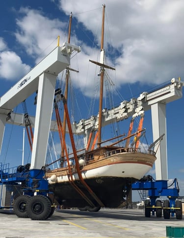 Après avoir vécu et fait des beaux voyages en Atlantique et en Méditerranée à bord du valeureux catamaran "Elle", dans une journée de pluie en Novembre 2022, nous avons appris que le géant caïque turque Bora Bora attendait à la Roche Bernard des nouveaux propriétaires pour prendre soin de lui.